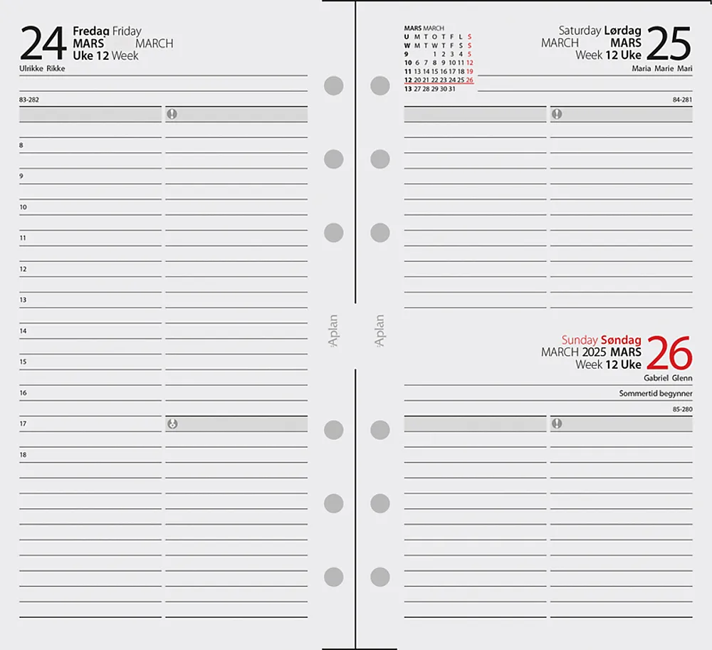 Aplan A6 Tempus dag årssett 2026 er en kompakt og praktisk kalender for deg som ønsker å holde styr på en travel hverdag. Kalenderen gir deg én hel side per dag med timeinndeling fra kl. 08:00 til 18:00, noe som gjør det enkelt å planlegge avtaler, oppgaver og notater.
