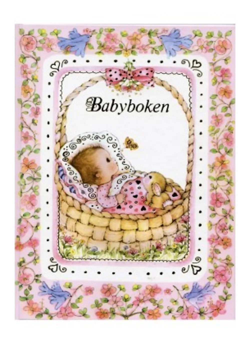 Babyboken ROSA. Denne nostalgiske babyboka har vært en bestselger i flere år. Det er nok mange som kjenner den igjen fra de selv var små. Babyboka tar for seg de viktige hendelsene i barnets første leveår. Det er satt av plass til å notere og lime inn minner som er verdt å ta vare på.