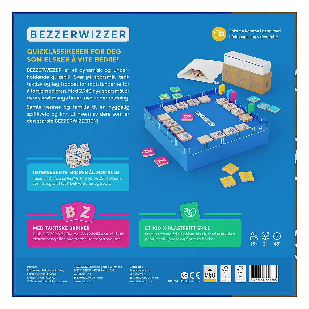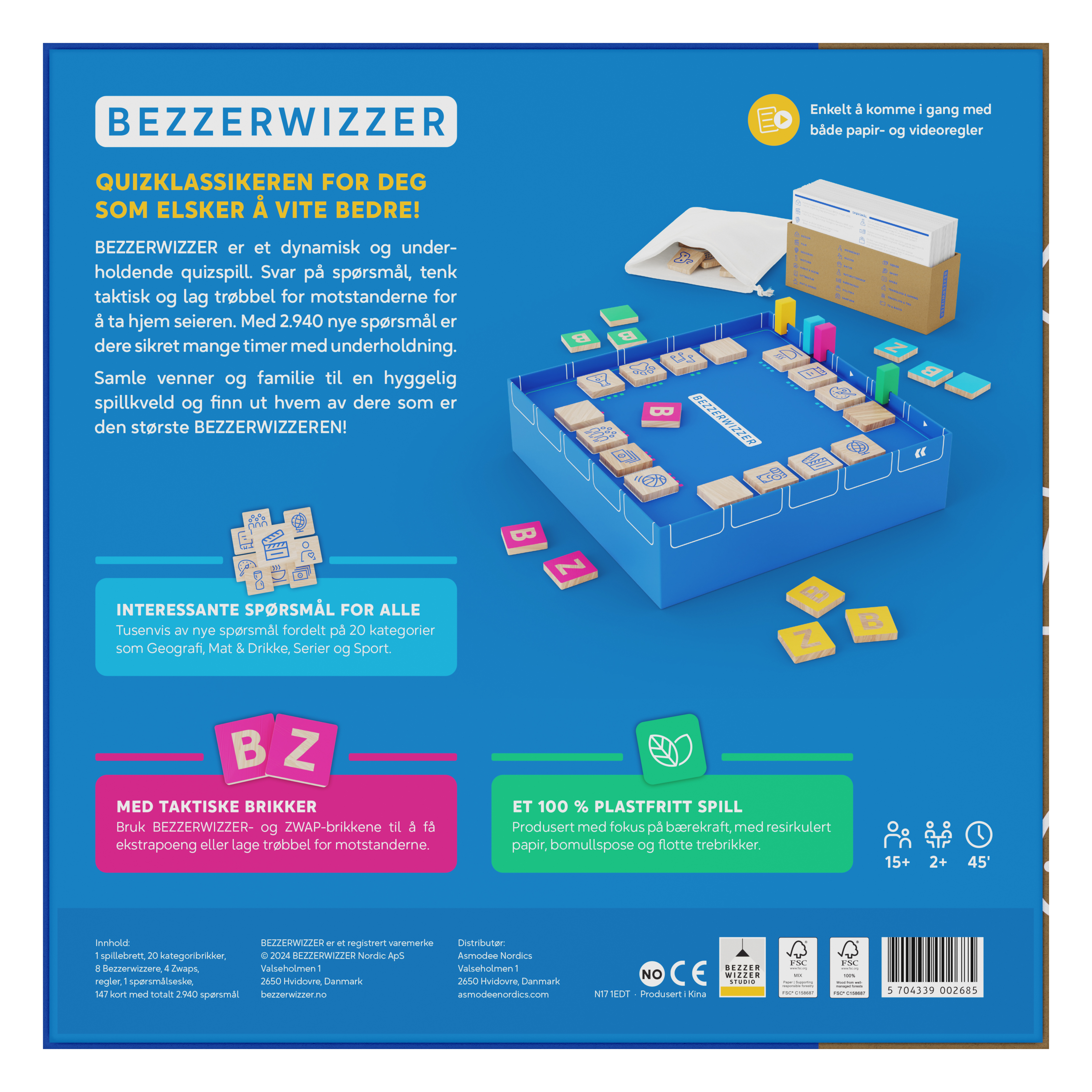 Bezzerwizzer er et dynamisk og underholdende quizspill. Her handler det ikke bare om å svare riktig på spørsmål, men også om å tenke taktisk og legge trøbbel for motstanderne dine! Med hele 2.940 spørsmål fordelt på 20 forskjellige kategorier, sikrer Bezzerwizzer timevis med morsom og utfordrende underholdning for hele familien eller vennegjengen.