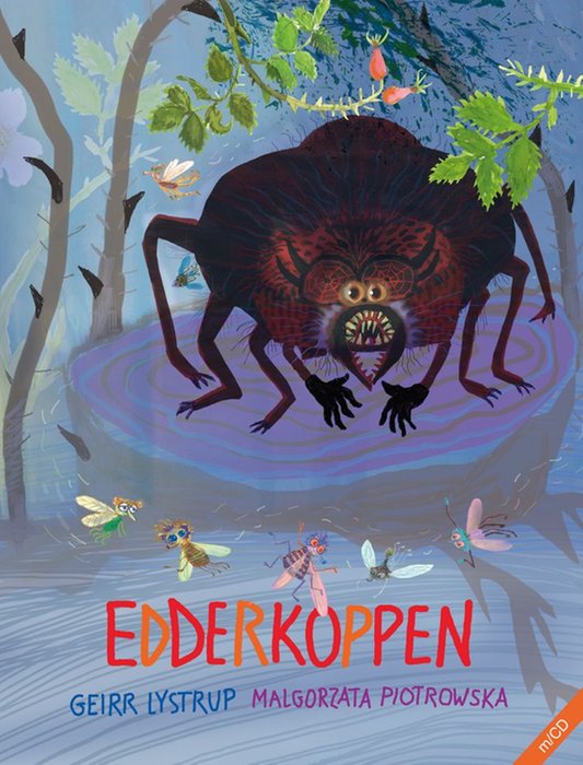 Edderkoppen: Bli med til det lykkelige fluelandet Sangvinia. Surr og snurriball hele sommeren lang. Men så dukker den farlige edderkoppen opp ... Edderkoppen er enda et fargerikt samarbeid mellom Geirr Lystrup og Malgorzata Piotrowska. CD med fortelling og sanger følger med.