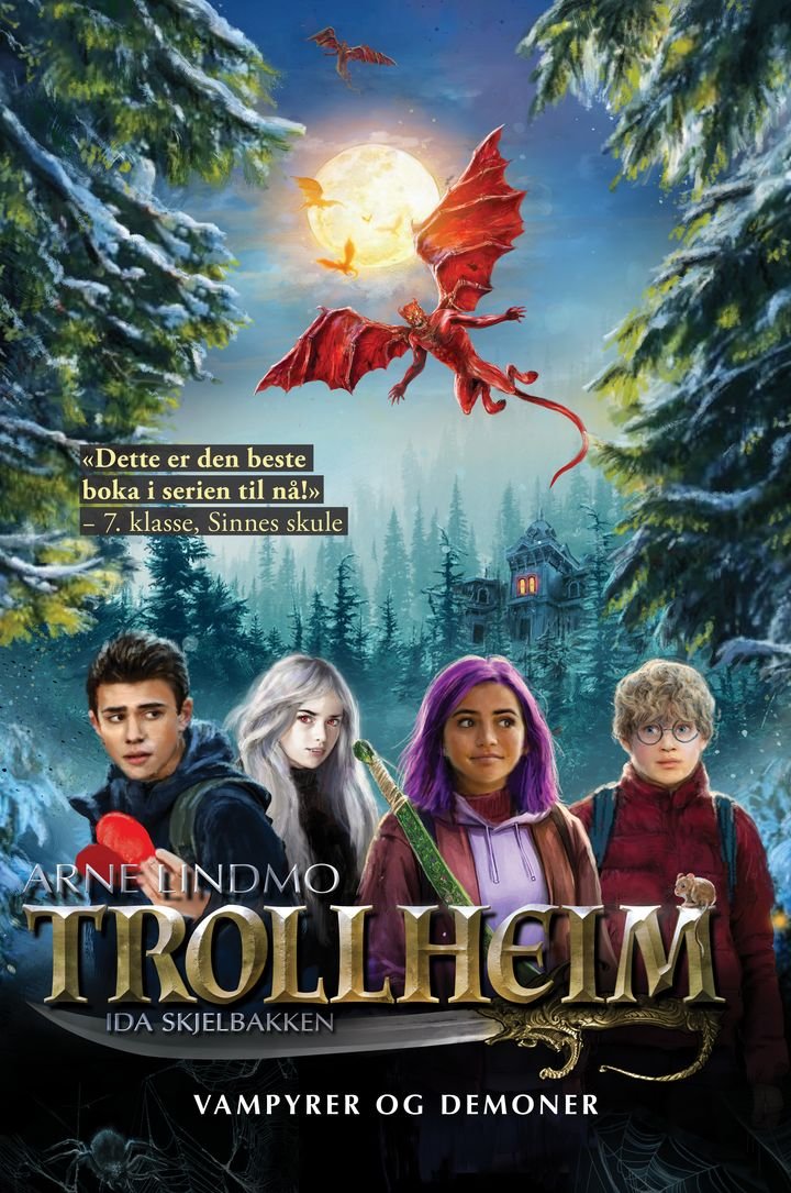 BOKSERIEN BARNA SLUKER! TROLLHEIM er et spenningspakket lyddrama i flere deler skrevet av en gnistrende, ny norsk forfatterpenn Arne Lindmo og dramatisert av skuespiller Anders Bye. Den første boken i serien vant ARKs barnebokpris: 10 000 barn kåret «TROLLHEIM - Kråkeslottets hemmelighet» til årets beste bok. Dette er den fjerde boken i serien: VAMPYRER OG DEMONER! «Dette er den beste boka i serien til nå!» - 7. klasse ved Sinnes skule i Sirdal Adam, Tara og Tobias har fått en ny venn, men hun er vampyr og har ikke vært på overflata på 200 år! Klarer de å holde identiteten hennes hemmelig? Vil hun passe inn på skolen? Og klarer de å hindre henne fra å myrde de slemme bøllene i klassen? Problemene blir verre og verre, spesielt når klassens superstjerne forelsker seg i Adam. Hun skyr ingen midler for å vinne hjertet hans, inkludert avtaler med de mørkeste makter ... LEONORA (11 år) elsker bøker som Harry Potter, Amuletten, Nordlys og Spilledåsen, nå har hun en ny favoritt: TROLLHEIM: «Boken var veldig bra! Spennende! Den begynte liksom med en gang. At han skulle flytte og at det var mange barn som hadde forsvunnet i TROLLHEIM.»