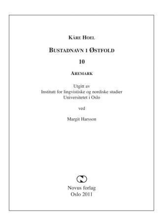 Av Kåre Hoel, Margit Harsson (red.), 2011.Del 10 av serien Bustadnavn i Østfold.