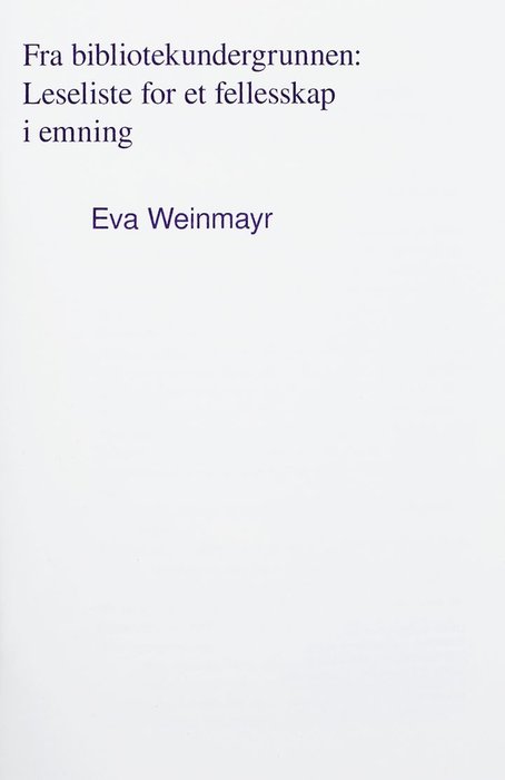 Fra bibliotekundergrunnen: Leseliste for et fellesskap i emning er andre tittel ut i Kunsten å publisere: relevante tekster på norsk, en pamflettserie for oversettelser av etablerte og kommende klassikere innen kunstnerisk publisering.