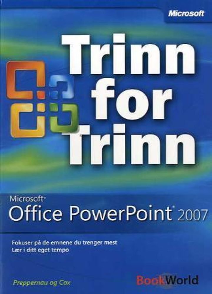 Boka gir en trinnvis innføring i presentasjonsprogrammet PowerPoint 2007. Den er inndelt slik at du kan konsentrere deg om de emnene du har mest bruk for, og du kan øve opp ferdighetene dine med egne oppgavefiler, nummererte trinn og gjennom skjermbilder som lar deg kontrollere ditt eget arbeide. Du lærer bl.a. å lage presentasjoner, lysbildetekster og tabeller, diagrammer og skjemaer. Har stikkordsregister.