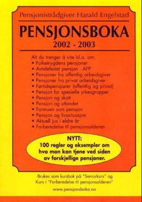 Boka gir råd om pensjon, skatter, jus, rettigheter og bolig og gir tips om hvordan du kan planlegge resten av yrkeslivet og forberede deg til pensjonsalderen. Boka har et vedlegg om hva man kan tjene ved siden av pensjonen. Har register.