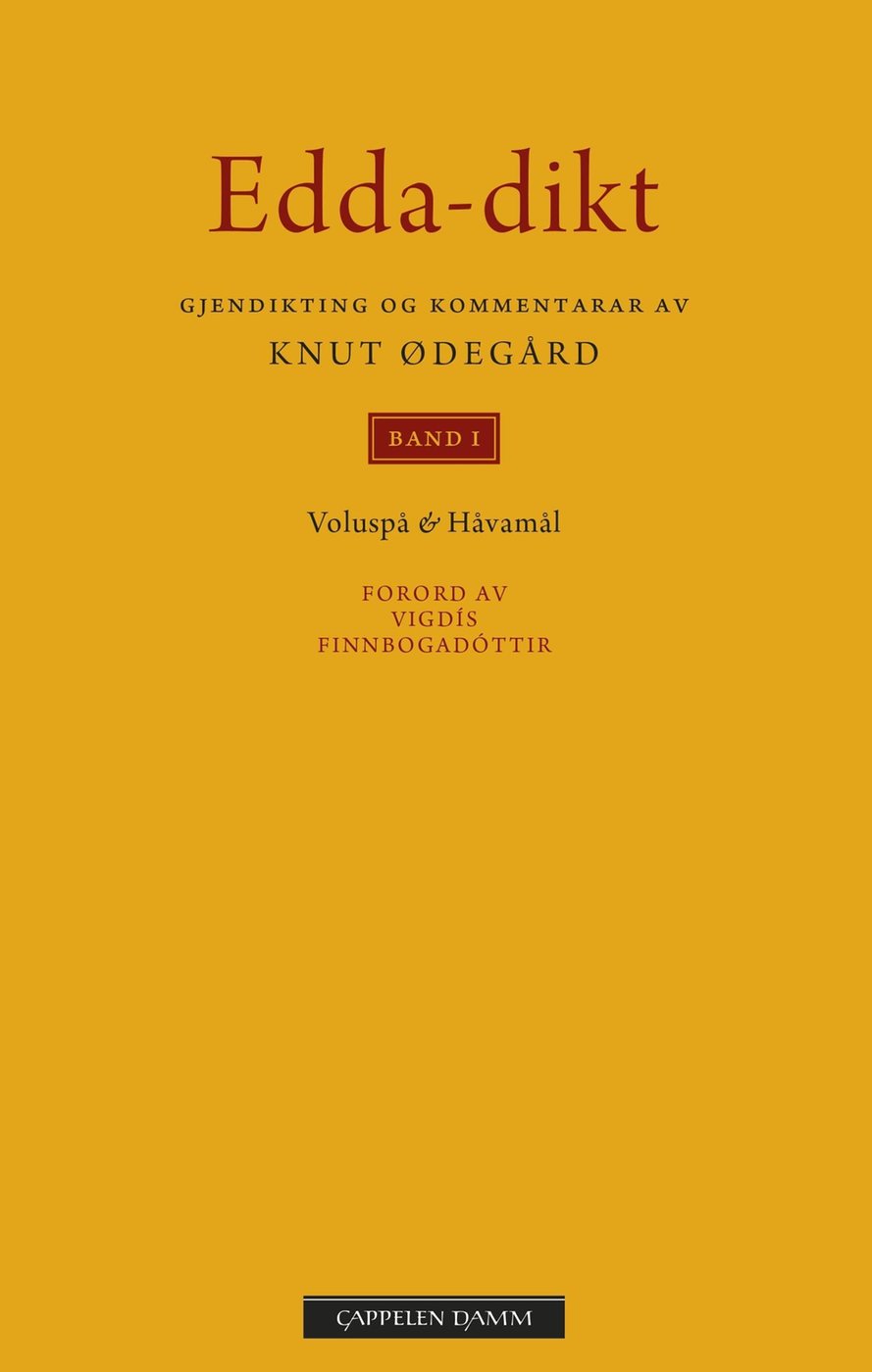 Forfattar og statsstipendiat KNUT ØDEGÅRD gjendiktar samtlege eddadikt i tre band som òg inneheld fyldige forklaringar til dikta. I dette første finn vi Voluspå og Håvamål.