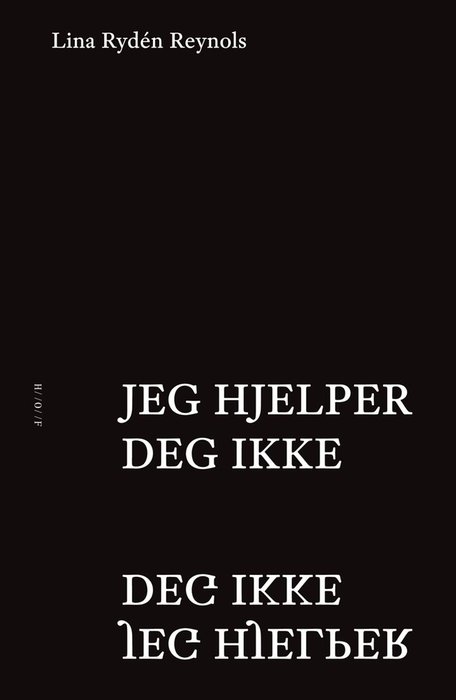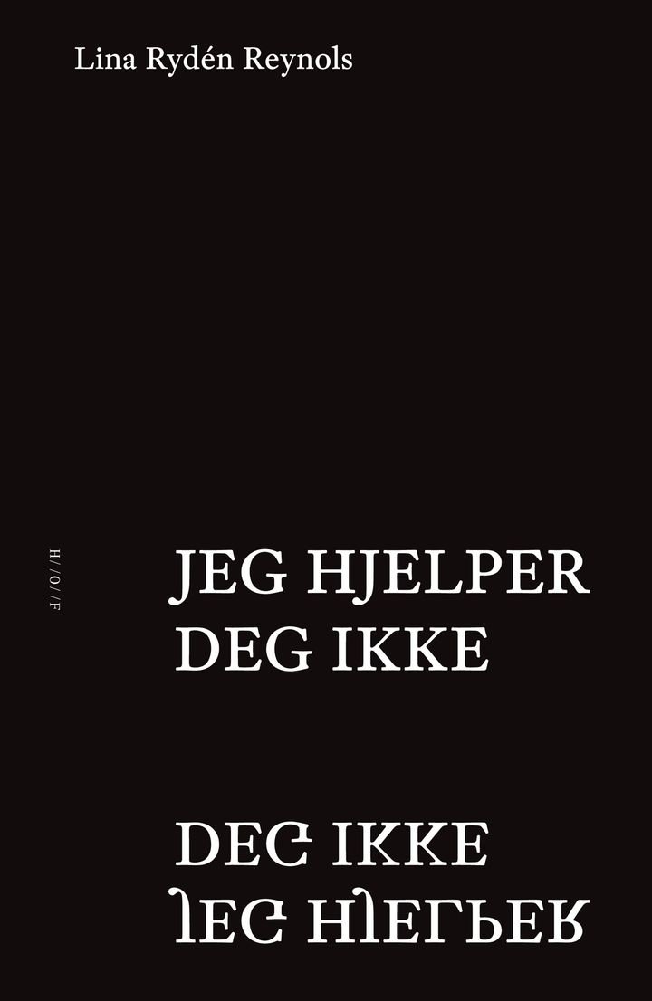 Hvis jeg kunne gjort om på alt ville jeg ha skaffet meg mer vold Jeg hjelper deg ikke skriver fram en avgrunn hvor ingenting rører ved noe annet, hvor ingenting kan vokse. Dette er kroppslig, billedlig og språklig nøyaktig poesi som rammer forestillingen om at en persons behov ligger til grunn for tilværelsen. Gjennom enkeltstående linjer, intervjuer og strofer på rim, oppstår en gjennomlyst, voldelig verden, hvor vi i endeløse speilinger aldri blir noe annet eller noe mer. Men likevel: Det finnes liv selv om det bare er død. Hva gjør vi da, med oss selv og hverandre? «Det är en rasande stark bok.» – Thomas Götselius, Expressen «Det är en förbryllande bok, förbannat svår att kategorisera som annat än ”experimentell diktsamling”. Den är helt uppburen av styrkan som uppstår av vissheten att det är exakt så här dikterna ska skrivas. I korthet handlar det om våld, om den oroliga samtiden, men det är också en manual till ett liv som inte betraktar döden som dess antites.» // «För att vara tydlig: en bok som får mig att tänka på Ann Jäderlund och Gunnar Björling är en ohyggligt bra bok!» – Björn Kohlström, Bernur Lina Rydén Reynols ble født i 1983 i Falun, vokste opp i Falun, Karlstad, Huddinge og Lillestrøm og bor i dag i Stockholm. Hun debuterte i 2019 med Läs mina läppar (Nirstedt/litteratur) som ble nominert til Borås Tidnings debutantpris. I 2021 gav hun ut diktpamfletten Se mig som om jag vore död (Pamflett), og i 2022 den kritikerroste boken Använd dem som du vill (Nirstedt/litteratur). Jag hjälper dig inte (ellerströms, 2025) er hennes fjerde bok og den første som gjendiktes til norsk. Rydén Reynols skriver også tekster for et talekor som med skiftende medlemmer framfører tekster i offentlige sammenhenger. Hun arbeider også som redaktør for Albert Bonniers Förlag.