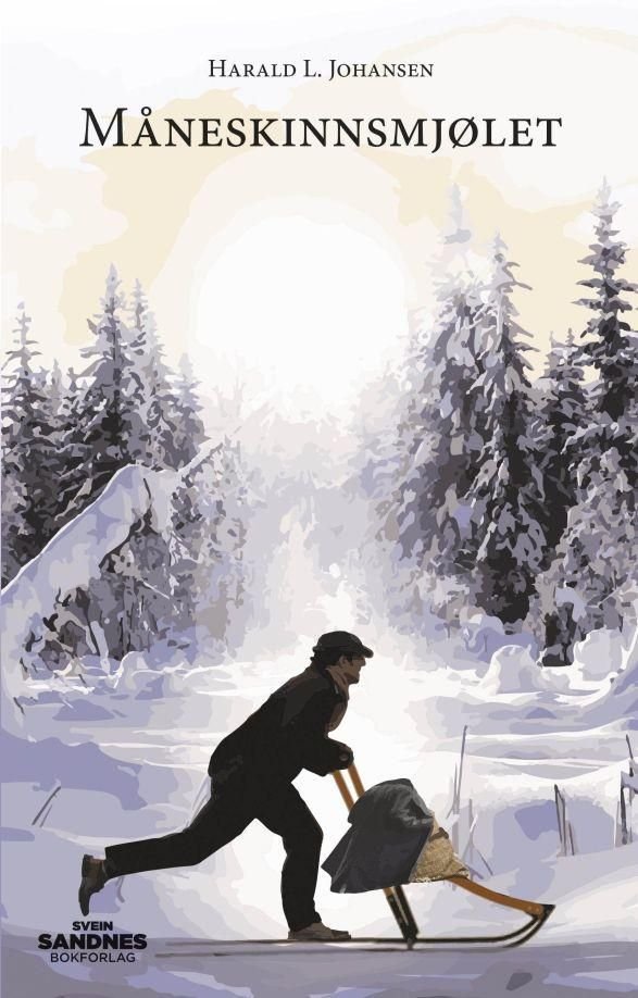 "Måneskinnsmjølet" er noe så sjeldent som en norsk kollektivroman skrevet på dialekt. Handlingen utspiller seg i ei bygd på Østlandet i mellomkrigstida. Motsetningene mellom husmenn, tenestefolk og storbønder står sentralt i handlingen. På Knatterud har husbonden gjennom generasjoner utnytta jintene på garden seksuelt. Resultatet blir til tider en lausonge. I sentrum for et bredt persongalleri møter vi kjæresteparet Elise og Johan. Hu er kokke på en av gardene i bygda, mens Johan er gardsgutt på en annen gard. Han drømmer som så mange gutter på landsbygda om å få "pløye blåmyra". Og han får hyre og drar ut med en lastebåt over Atlanterhavet, mens brorparten av lønna sendes Elise, som samler utstyr til felles husholdning. Dette er en roman som handler om fattigdom, tragedier, mystikk, gleder g sorger, om utnytting, fornedring og samhold i ei norsk bygd på Østlandet i mellomkrigstida. Sentralt i skildringa står noen sterke kvinner som vil opp og fram. Harald L. Johansen er romandebutant sitt syttiende år. Han er vokst opp i Romedal og har bodd det meste av livet i Sørum.