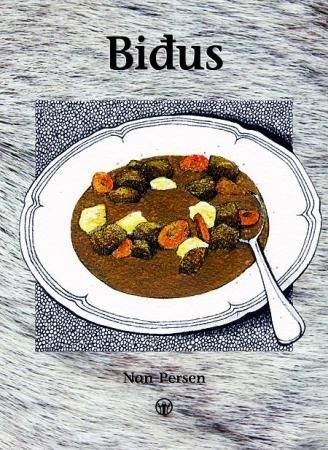Oppskrift på bidus (reinkjøttgryte). Oppskriften presenteres trinn for trinn, ved hjelp av kort tekst og illustrasjoner i svart-hvitt. Heftet er trykt på vannavstøtende papir.