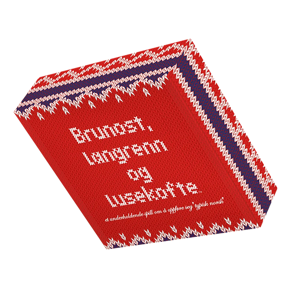 Brunost, langrenn og lusekofte er et fantastisk underholdende spill, der du får eller taper poeng avhengig av hvor typisk norsk du oppfører deg... på godt og vondt. Spillet inneholder mer enn 300 treffsikre spørsmål - om alt fra grilldresser, brunost og elg, til taxfree-kvoter, lørdagspizza og grensehandel. Et morsomt spill med høy gjenkjennelsesfaktor som garantert setter i gang muntre diskusjoner.