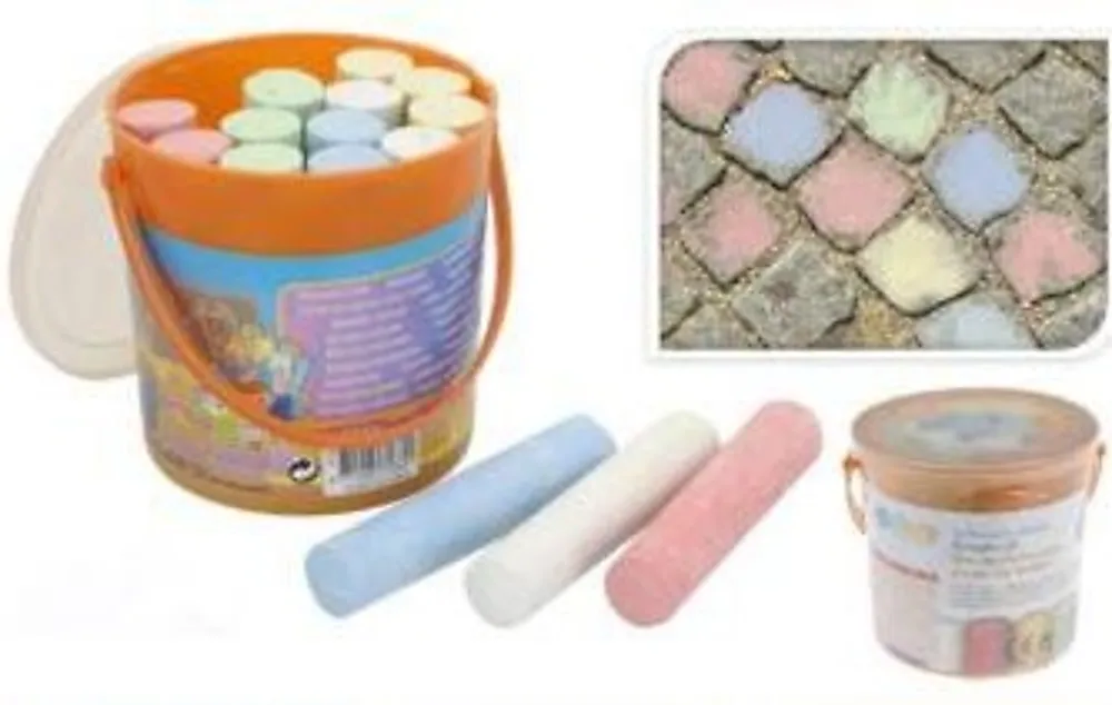 Bøtta inneholder 15 kritt, så her er det bare å slippe kreativiteten løs. Størrelsen gjør at de holder hele sommeren gjennom, og krittet kan enkelt vaskes bort i regnvær eller med hageslangen.