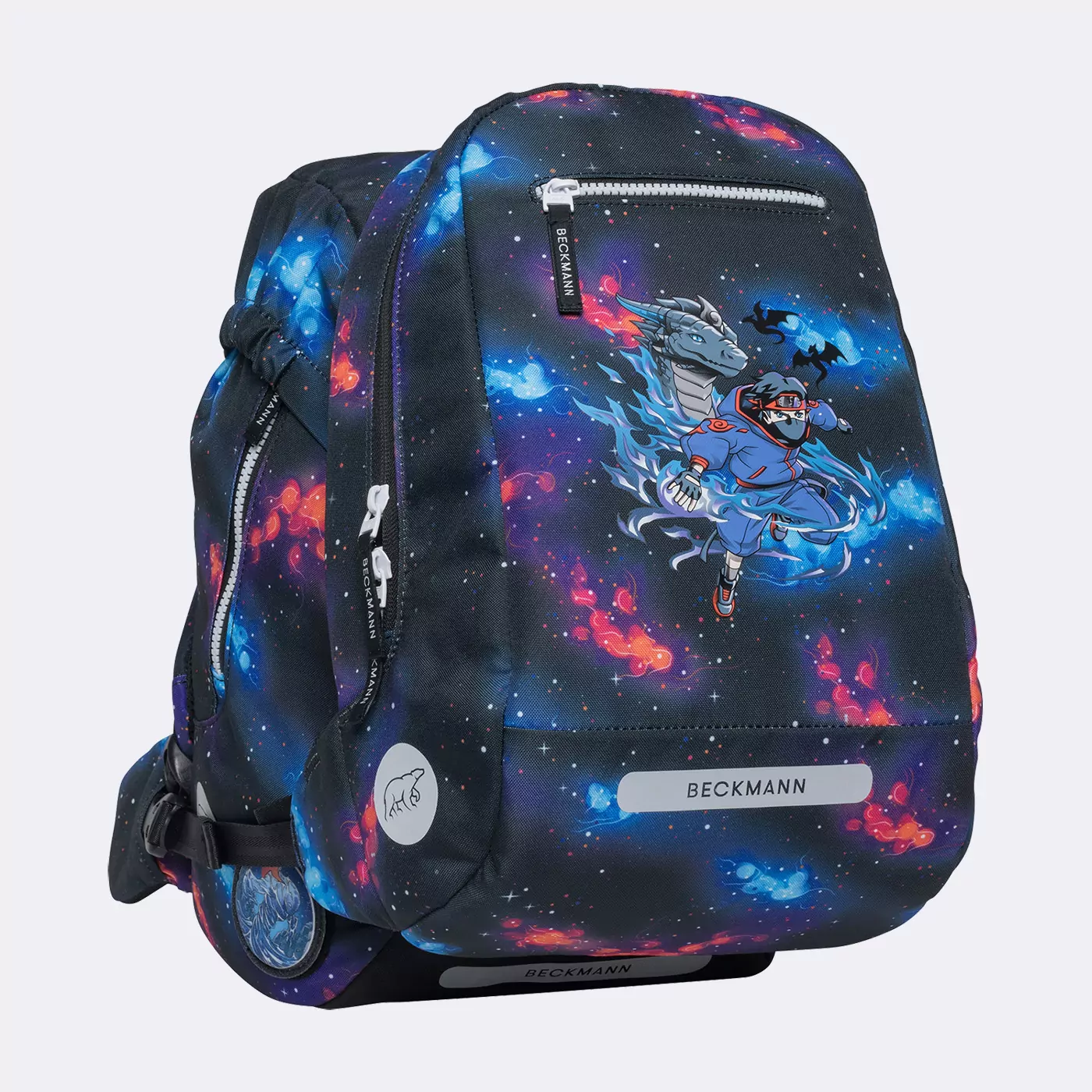 Gym- og tursekken Beckmann Ninja Elements er den ultimate løsningen for barn som trenger en praktisk og ergonomisk ryggsekk til både skole og fritidsaktiviteter. Sekken kan brukes alene eller festes enkelt til Beckmanns skolesekker for optimal vektfordeling og komfort. Den er laget av slitesterkt og miljøvennlig materiale fra resirkulerte plastflasker.