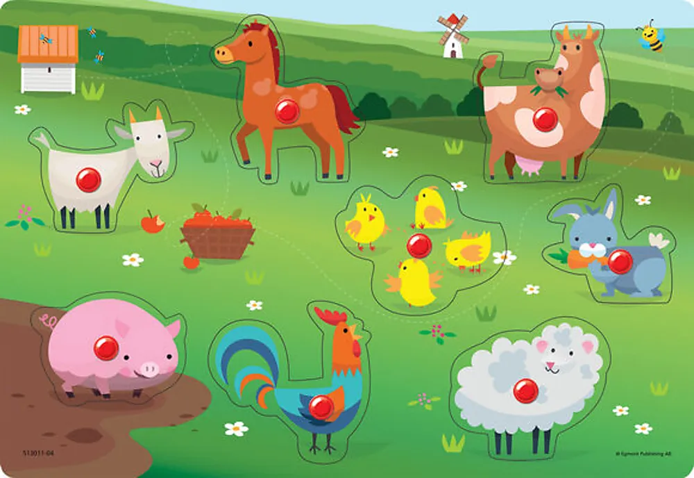 Knottepuslespill i tre med dyr på bondegården.8 biter.
