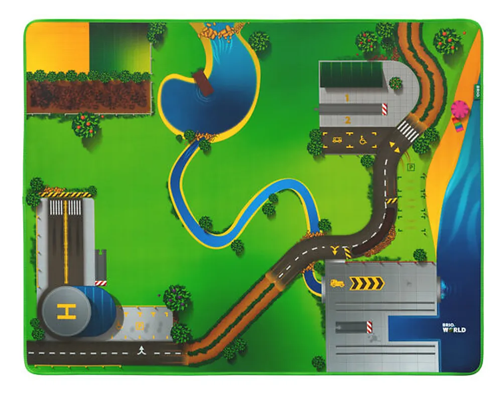 Denne lekematten har et morsomt og fargerikt design og er perfekt for åpen lek med togsett og klassiske kjøretøy. Inneholder flyplass, bondeland, havneområde, løfting og lasting samt flotte landskap. Denne lekematten har målene 155 x 120 cm og er laget av lett 3 mm tykt og mykt skum, som er komfortabelt å leke på, inneholder ingen giftige stoffer og er lett å gjøre rent. Så når leken er forbi kan det rulles sammen og lett legges tilbake på plass.
