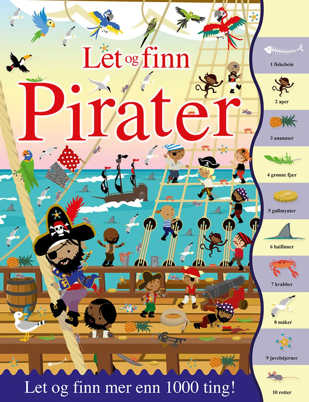 Velkommen til å lete og finne mer enn 1000 ting i piratenes verden! I denne spennende boken kan du utforske bildene fra sjørøverskuta med mer enn 1000 ting å lete etter. Fra utkikkstønna og kanonrommet til kapteinens lugar og skattekammer.