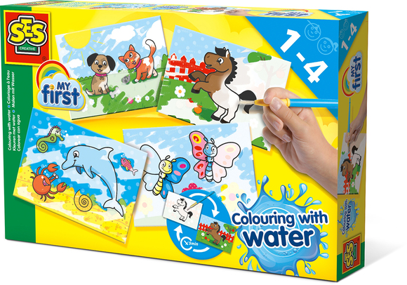 Mal uten søl! Mal bildene med en våt pensel og se hvordan fargene på bildene kommer frem.