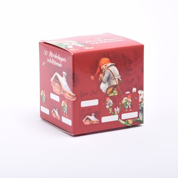 Rull med selvklebende merkelapper med forskjellige nissemotiver.