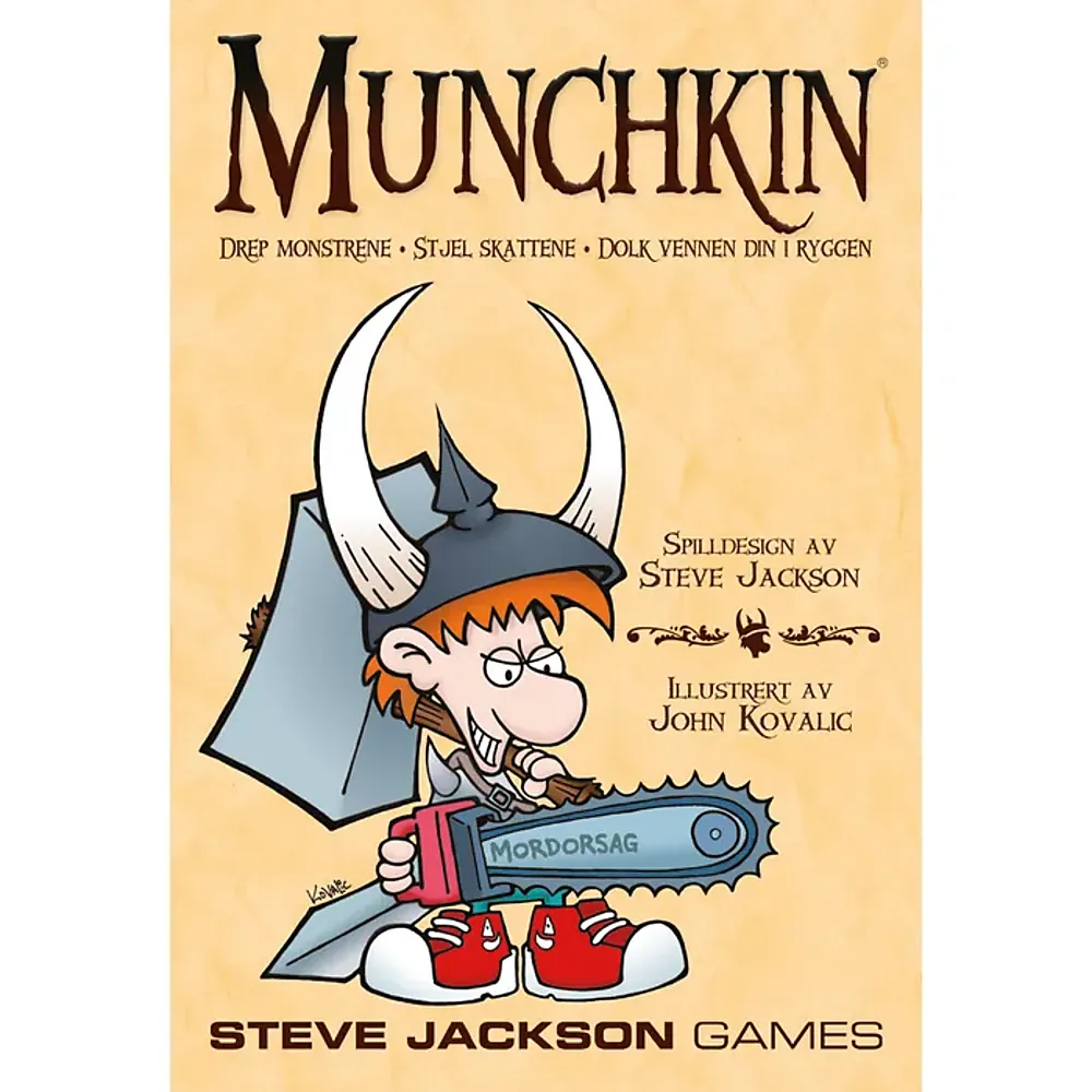 Du og vennene dine konkurrerer om å bekjempe monstre og få tak i magiske dingsebomer. Og for noen dingsebomser! Ikle deg Den Godt Utrustede Hjelmen og Rævsparkende Støvler. Bruk Napalmpælmeren eller den frapperende fragmenterende, fromme og fryktelige Motorsagen til å slakte Potteplanter og Siklende slim, og kjemp deg opp til den episke Plutoniumsdragen ... Munchkin kan kaste enhver rollespillende gruppe ut i hysterisk latter - og mens resten ler, kan du stjele tingene deres. Boksen har perfekt ta-med- størrelse, og passer ypperlig i festlige lag som hytteturer, spillkvelder, familiekos og vennefester.