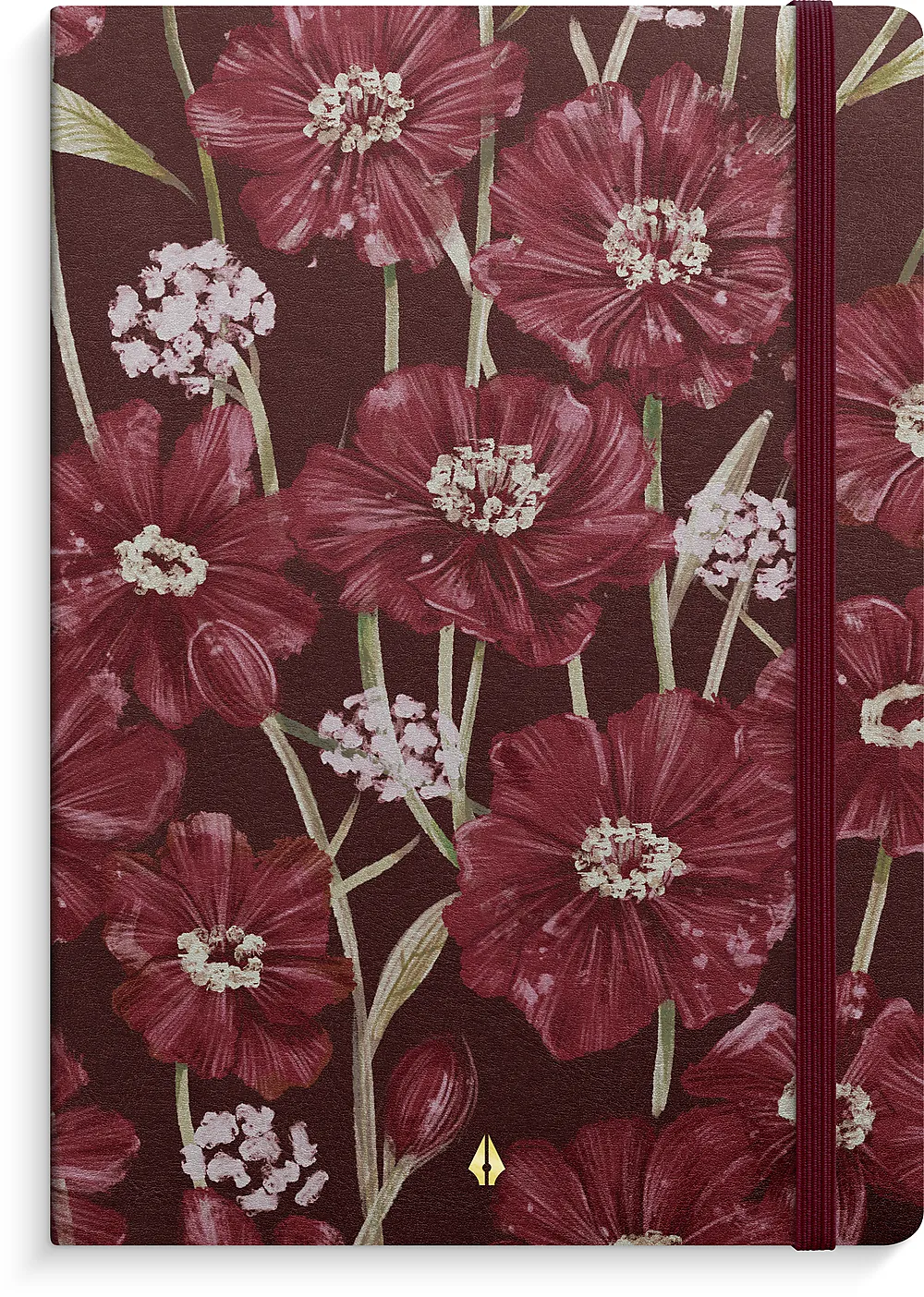 Deluxe er en lekker og eksklusiv serie av notatbøker innbundet i mykt kunstskinn. Denne notatboken kombinerer stil og praktiske detaljer, og er designet for å være både funksjonell og estetisk tiltalende. Notatboken har vakre blomsterdetaljer på forsiden i en elegant burgunderfarge.