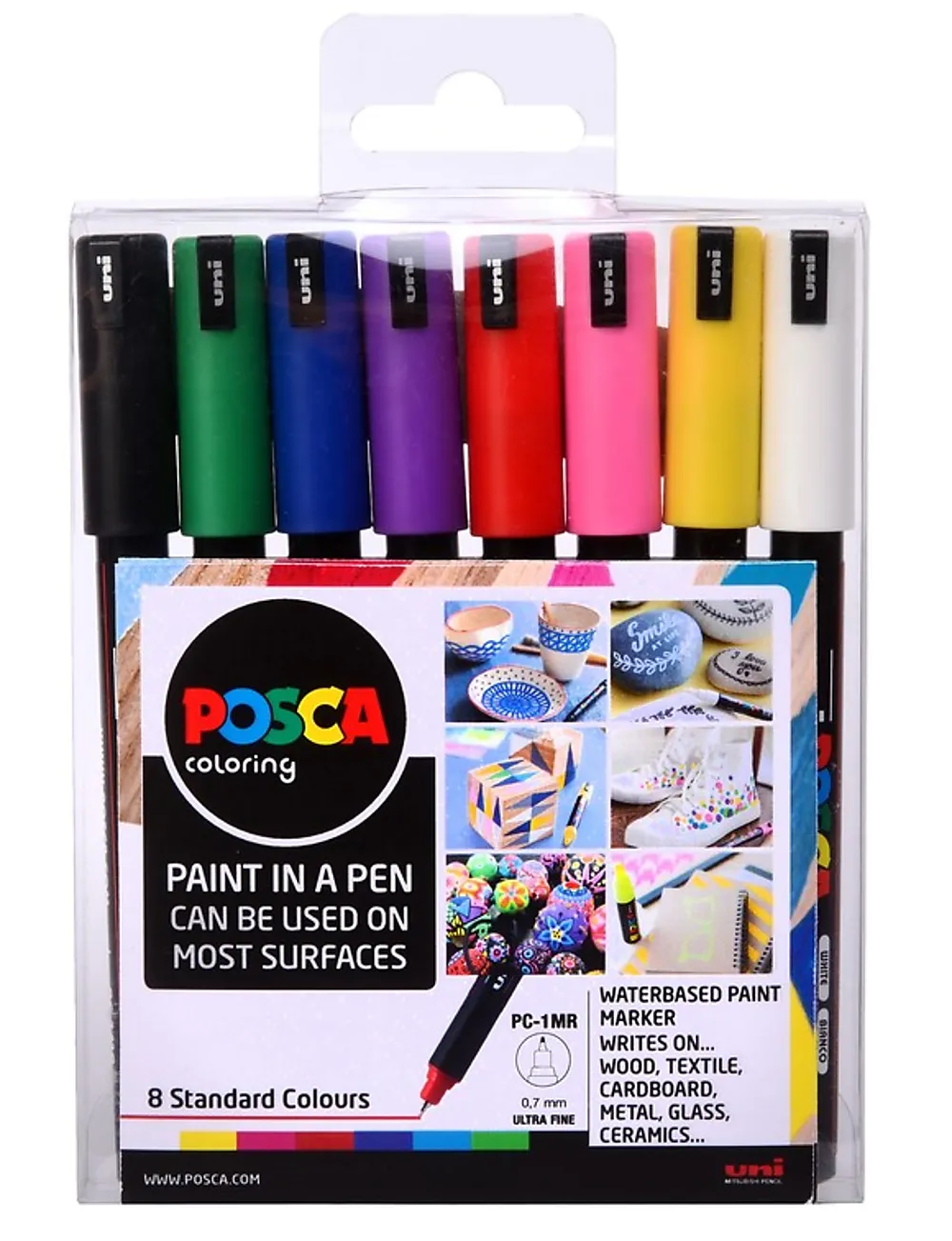 Vannbasert permanent malingsmerkepenn. Skriver på papir, kort, metall, glass, stoff og de fleste andre overflater.Blekket trekker ikke gjennom papiret. 0,7 mm spiss