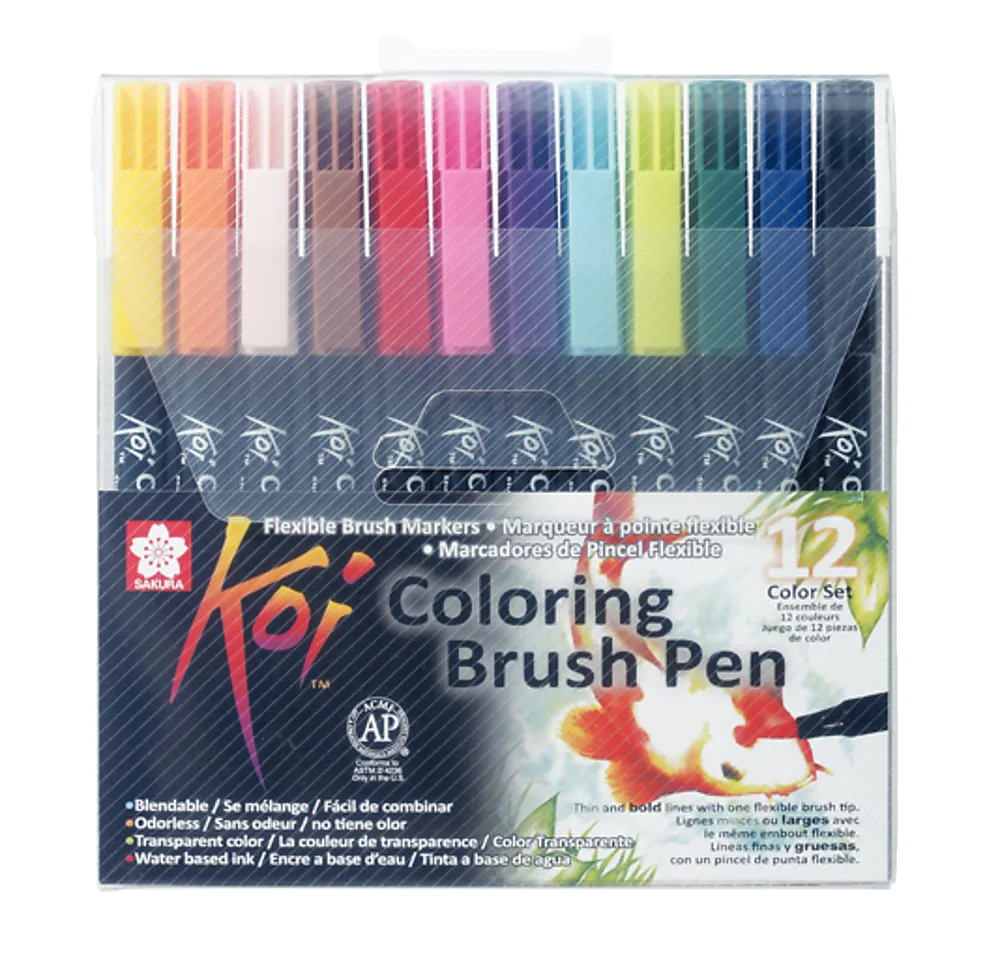 Luktfri, vannbasert tusj med penseltupp til skrift og fargelegging. Transparente, klare farger som kan brukes lag på lag for mørkere nyanser eller for å blande farger. Den fleksible penseltuppen gjør det mulig å lage både fine, middels og brede linjer ved å endre presset. Fargeløs blender kan kjøpes separat og brukes for ekstra transparente, jevne graderinger og fargeblandinger.