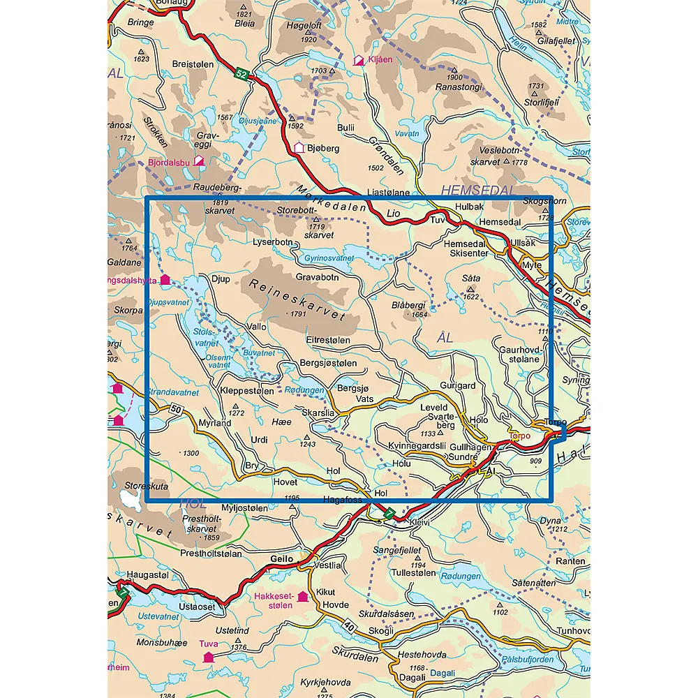 Enten du vil ferdes over de åpne viddene på Reineskarvet, fiske i de mange vannene eller oppleve kulturlandskapet nede i dalførene så viser dette kartet deg veien. Her finner du sommerstier og skiløyper, og informasjon om servicetilbud og aktiviteter.