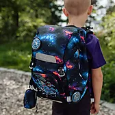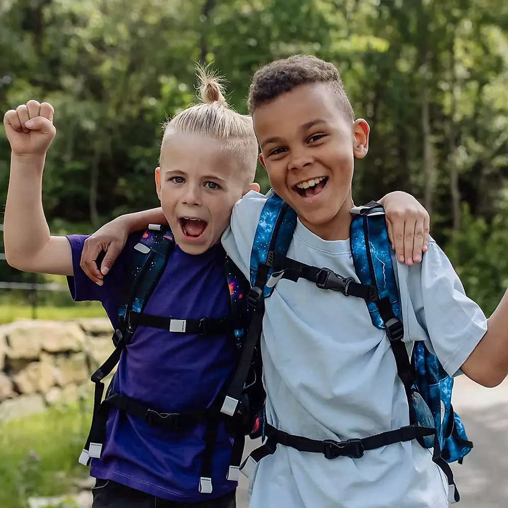 Sekken er designet slik at vekten holdes tett inntil ryggen. Dette gir bedre balanse og riktig vektfordeling gjennom hele skoledagen. Med god polstring i ryggen, justerbare skulderstropper og brystrem får barnet en komfortabel og stabil skolesekk som er enkel å bære.