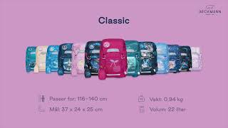 Classic er lettere, enklere i bruk og svært populær som skolesekk til førsteklasse fordi den har riktig størrelse og god ergonomi for de minste skolebarna.