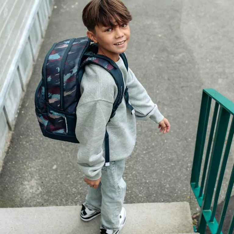Sekken er designet med fokus på ergonomi. Polstret ryggpanel, justerbare skulderstropper, brystrem og hoftebelte bidrar til å fordele vekten jevnt og gjøre sekken komfortabel å bære gjennom hele skoledagen.
