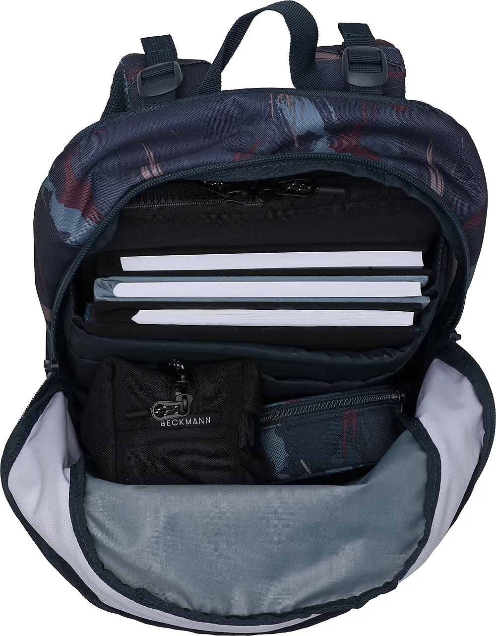 Skolesekk 3–7. klasse Beckmann Sport Junior Blue Brush 30L er en ergonomisk og funksjonell skolesekk utviklet for elever på mellomtrinnet. Sekken kombinerer god bærekomfort, praktiske løsninger og et sporty design som gjør den godt egnet til både skole og fritid.
