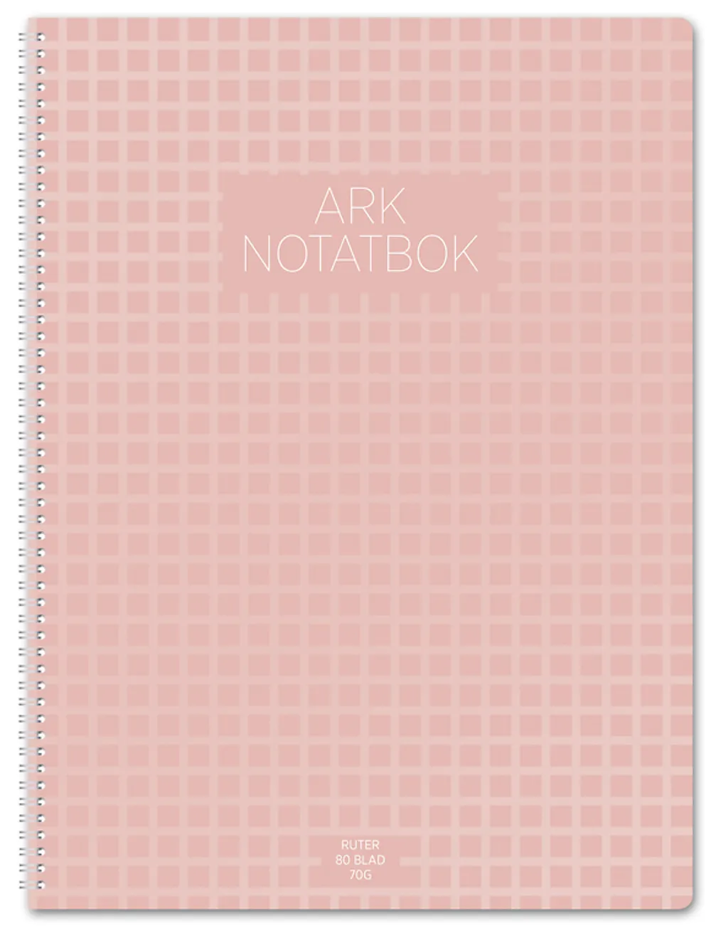 ARK spiralhefte svanemerket, A4 70 gram, 80 blad, perforert med 4 hull - 80 mm hullavstand, ruter.