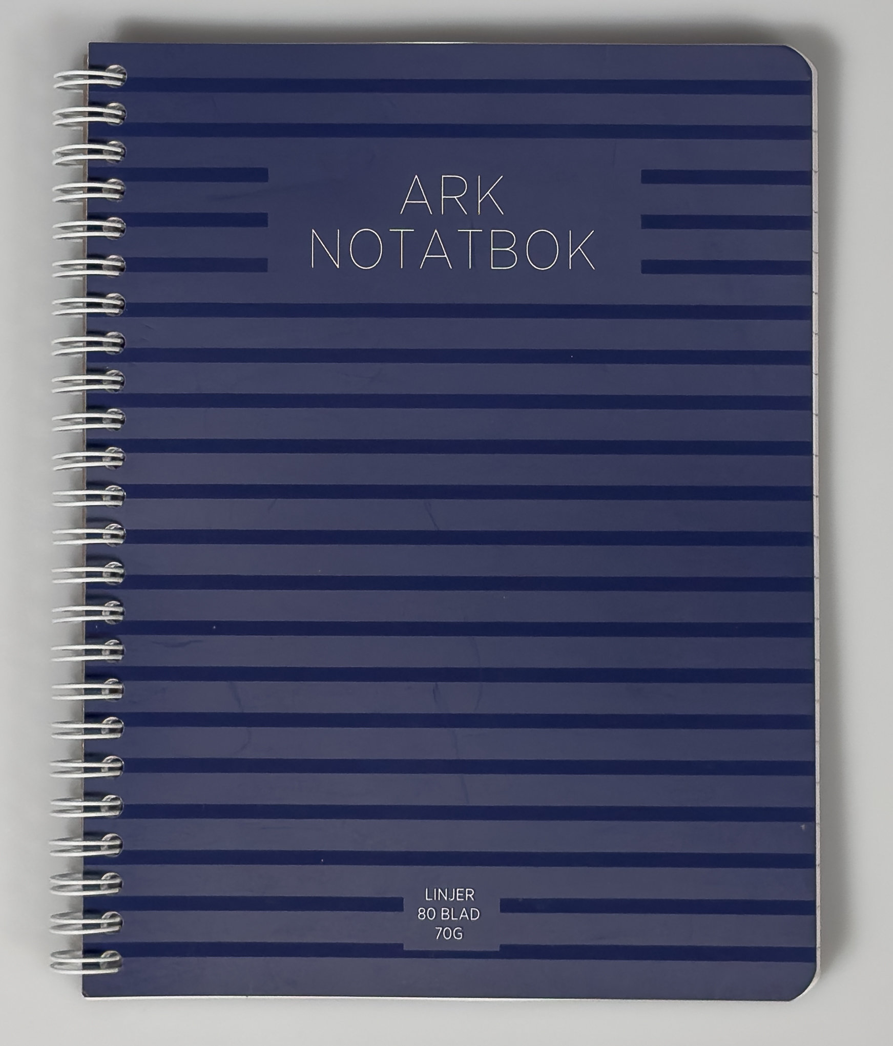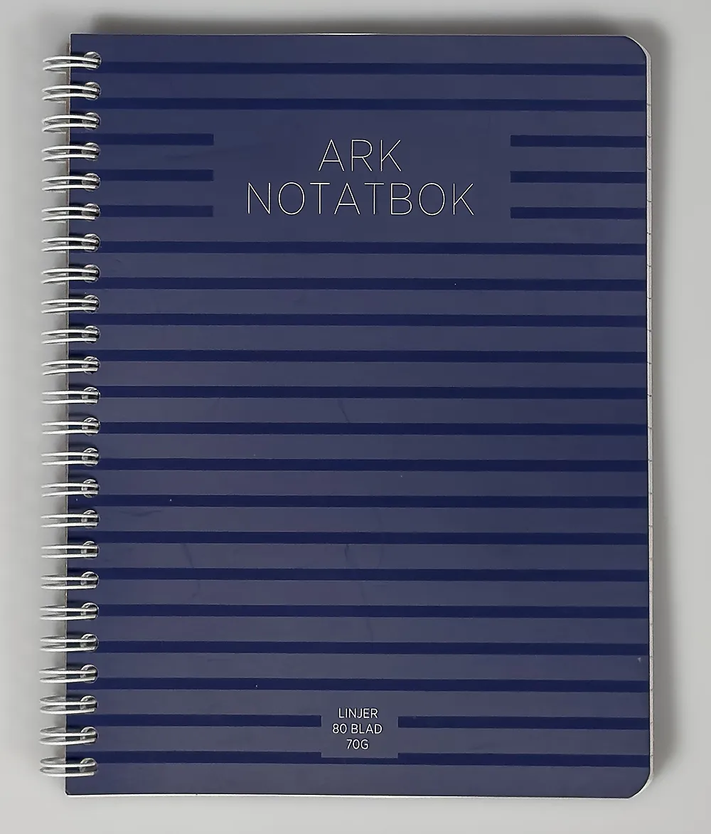 Utforsk vårt ARK spiralhefte i elegant mørkblått, ideelt for organisering av notater og prosjekter.