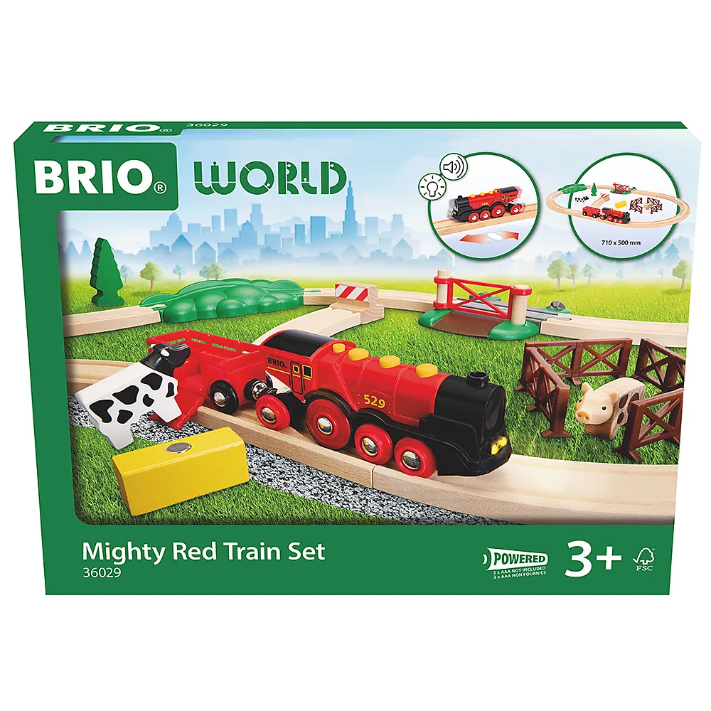 Siden 1884 har BRIO® stimulert unge sinn med produkter som åpner for et helt univers av lek og fantasifulle eventyr. Mighty Red Togsett er intet unntak, med sitt rene design og uendelige lekemuligheter. Settet inneholder det populære Mighty Red batteridrevne toget som kan kjøre både fremover og bakover, med lys, lyder og frihjulsmodus når batteriene er tomme.
